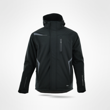 Muška softshell jakna izrađena je od troslojne tkanine (300 g/m²) koja kombinira 95 % poliester i 5 % elastin, osiguravajući savršenu ravnotežu između izdržljivosti, elastičnosti i udobnosti. Vanjski sloj štiti od vjetra i kiše zahvaljujući vodootpornosti od čak 8000 mm, dok srednji sloj omogućava izvrsnu prozračnost (3000 g/m²/24 h), čime sprječava nakupljanje vlage tijekom aktivnosti.